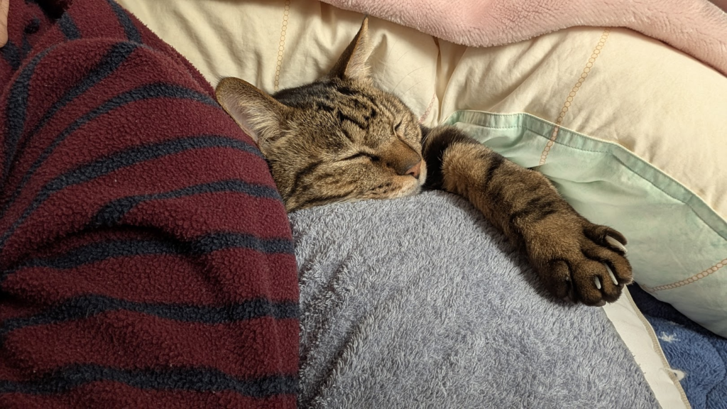 出てきません。 毛布をめくると、 「は?なんでめくるのにゃ?」 という表情。 い…