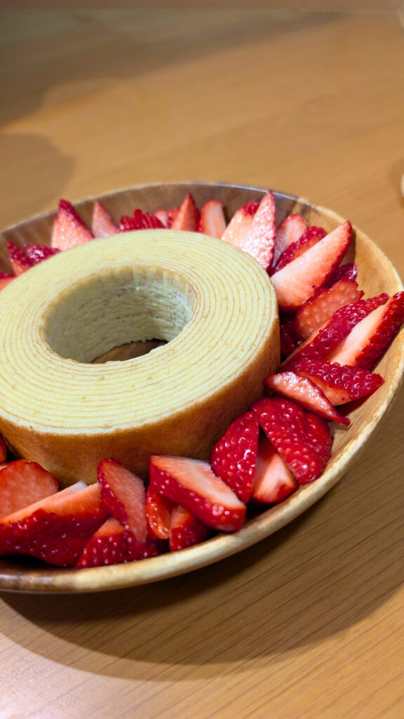 [Blog]美味しいバウムクーヘンと、完熟苺をトッピングしてみた