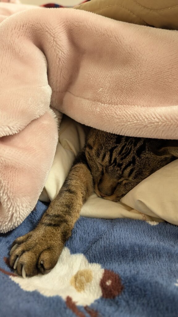 ふわふわモフモフの布団で寝ている。毎度のことながら羨ましい。 そして寝ているの…