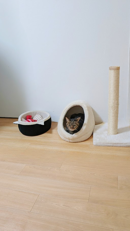 布団からちょこんと顔を出して寝ている姿。 人間ですか笑 近づいたら、ややイカ耳…